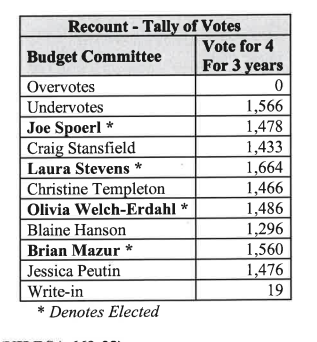 Note that the hand count did adjust two candidate totals, each by 1. In one case, it was a ballot that was mistakenly not scanned. In another case, it was a write-in that had not been adjudicated properly the first time around. These were both fully understandable human errors. The outcome was unchanged – the same four people were elected, and the vote counts for the 4th and 5th candidates remained the same, 2 votes apart.